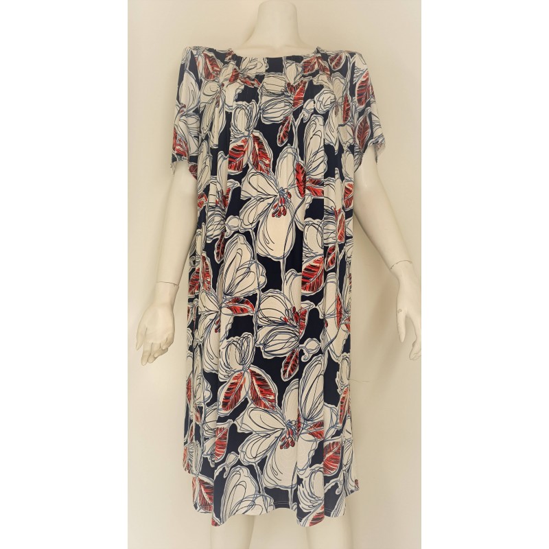 BARANDI abito maniche corte vestito copri costume GOYA 222 taglie forti svasato mezza manica FIORI BLU BIANCO S-XXXL