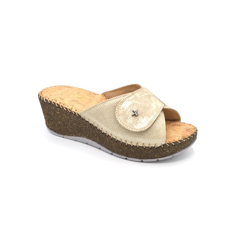 BENEXA ciabatte zeppa alta pelle strappo 6056 SUMMER BEIGE morbido plantare imbottito sottopiede sughero