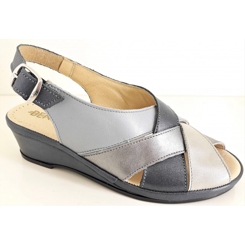 BENEXA sandali incrociati pelle 4153 PERLATO AVIO BLU zeppa california morbido plantare