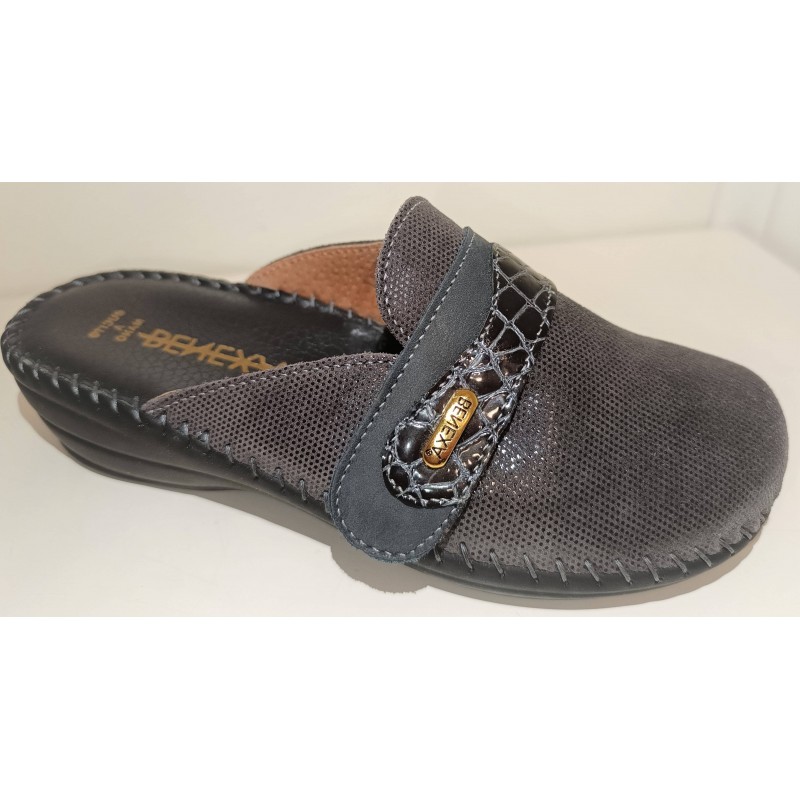 BENEXA ciabatte chiuse pelle strappo 6388 PUNTO GRIGIO ANTRACITE sottopiede plantare imbottito morbido