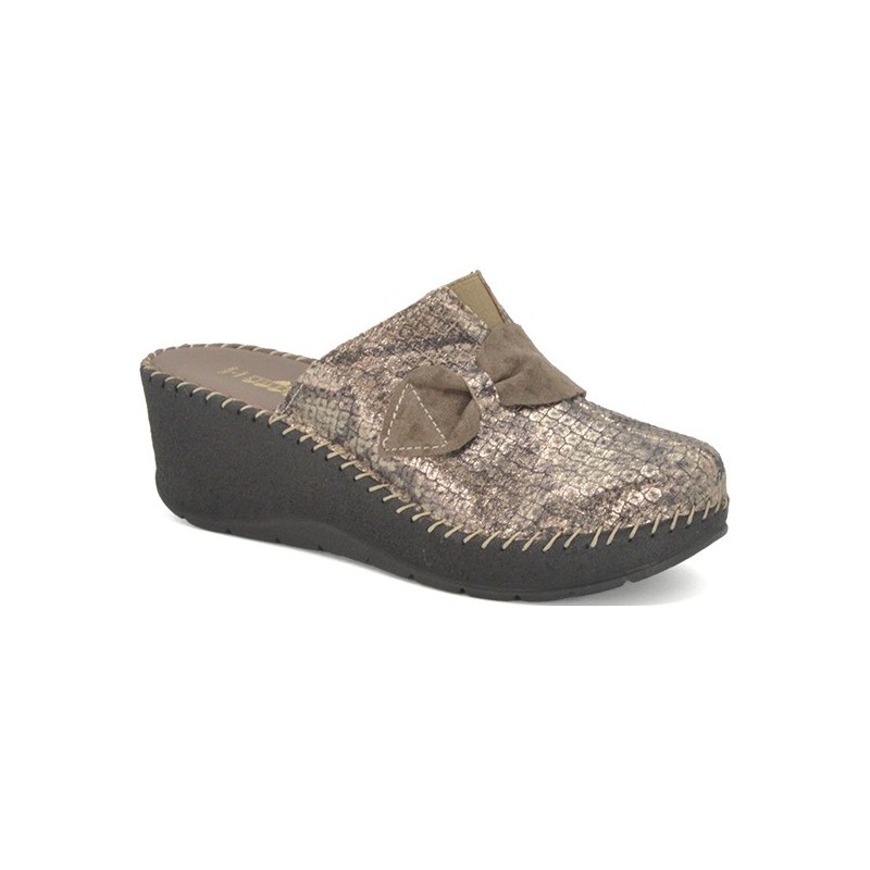 BENEXA ciabatte chiuse zeppa alta pelle 8655 BRONZO morbido plantare imbottito sottopiede zatterone