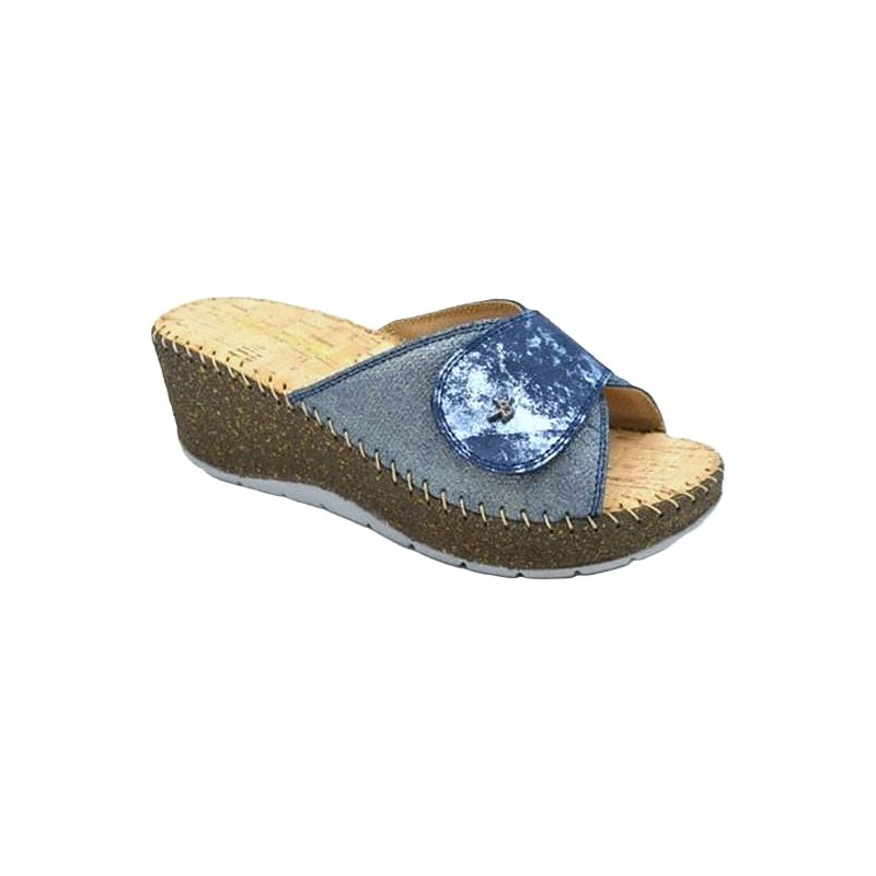 BENEXA ciabatte zeppa alta pelle strappo 6056 BLEU morbido plantare imbottito sottopiede sughero