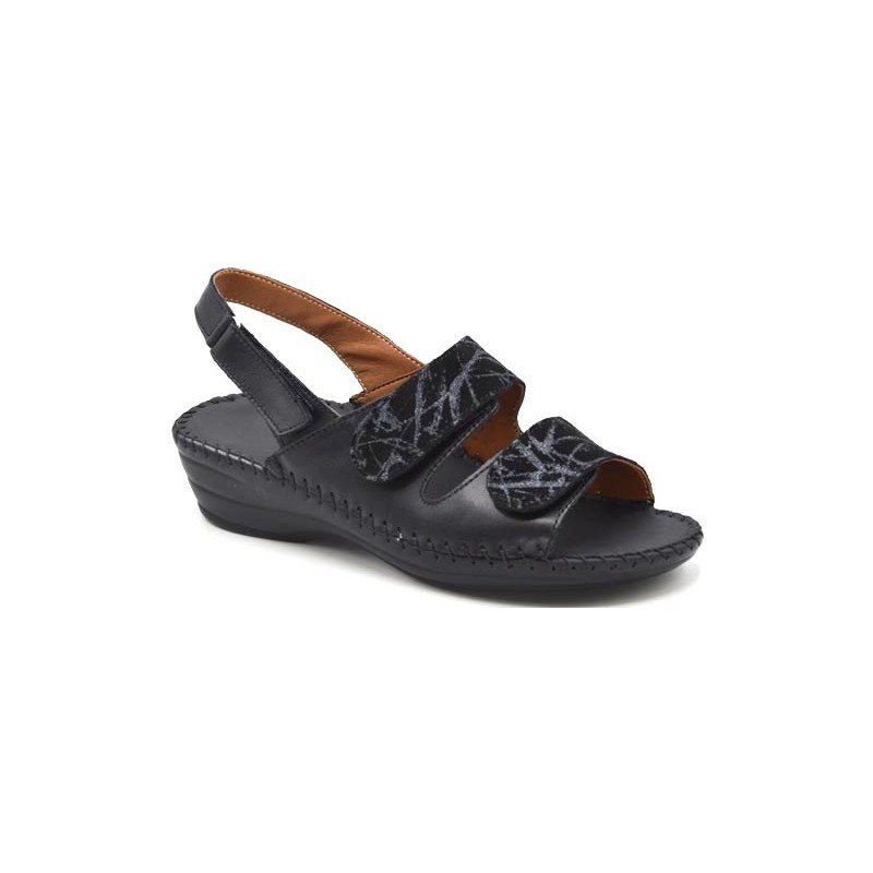 BENEXA sandali 2 fasce pelle strappi 6033 NERO morbido sottopiede plantare imbottito cucito a mano