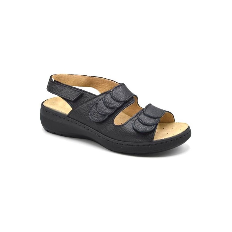 BENEXA sandali 2 fasce strappi pelle MELO NERO 6363 predisposte plantare estraibile suola flessibile