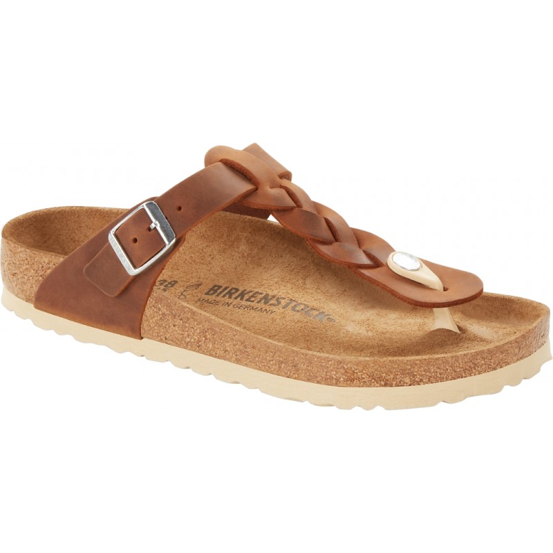 BIRKENSTOCK Infradito treccia GIZEH BRAIDED Oiled Leather COGNAC plantare pelle 1 fibbia 1021355