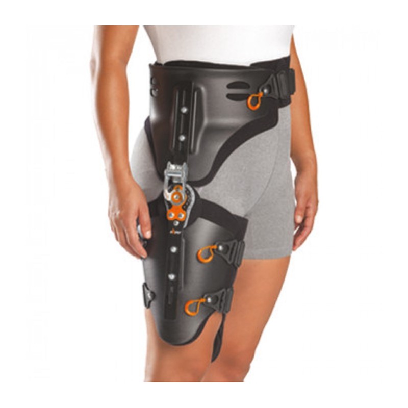 Tutore universale per anca con controllo di flessione-estensione e abduzione-adduzione.