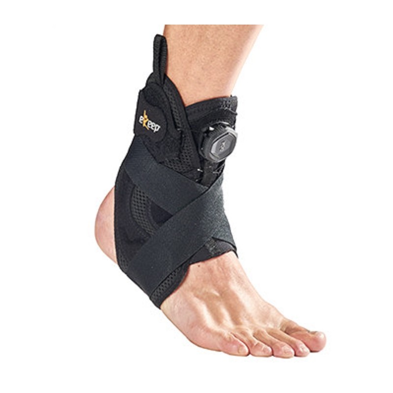 Indossare il tutore come un calzino aiutandosi tirando dalle apposite asole. Stringere la cavigliera tramite il BOA premendo il rotore e ruotandolo in senso orario sino ad ottenere la compressione desiderata. Tendere le bende elastiche, incrociarle sul collo del piede, avvolgerele intorno alla caviglia e fissarle sul lato opposto tramite le chiusure a strappo.