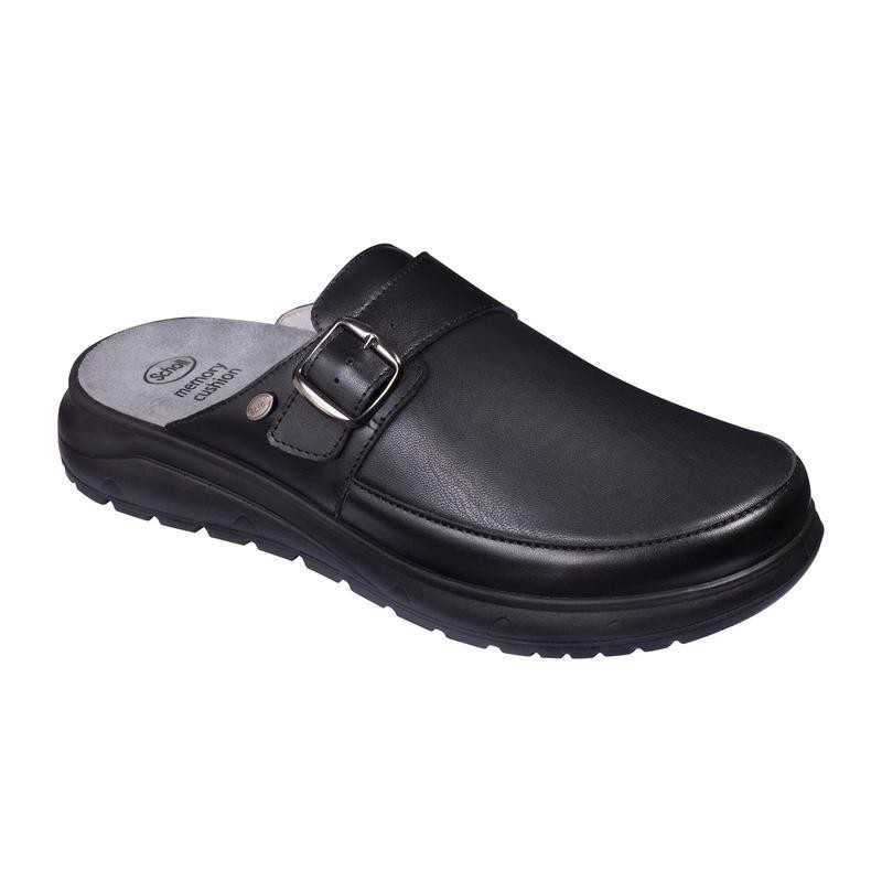 SCHOLL ciabatte uomo KLAUS ELASTIC pelle elasticizzata NERO plantare Memory estraibile