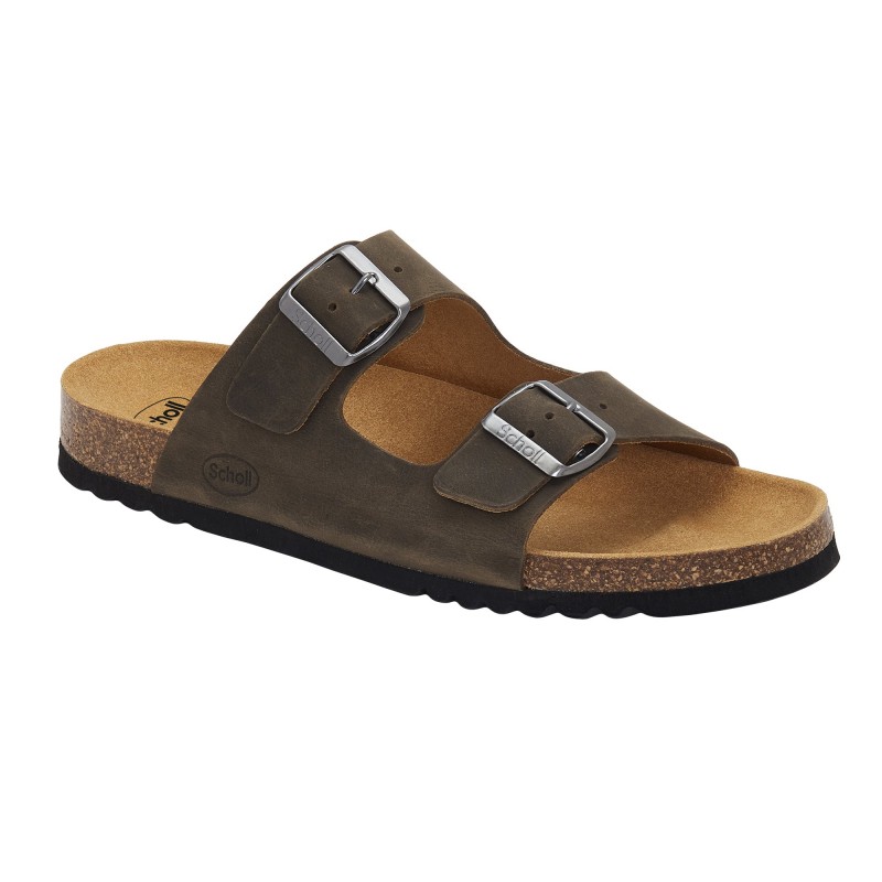 SCHOLL ciabatta uomo pelle GERRY 2 fibbie TESTA DI MORO plantare BioPrint fondo sughero