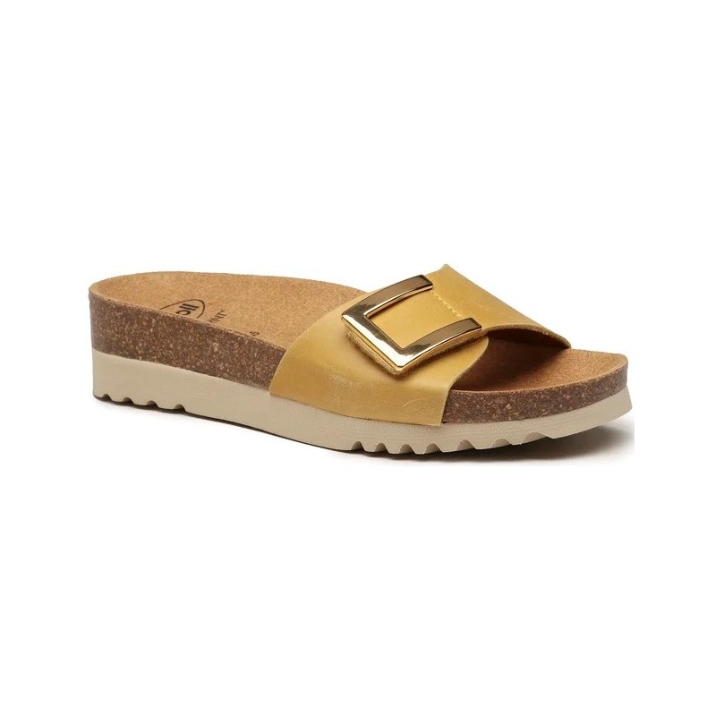 SCHOLL ciabatta pelle MONTEREY MULE plantare BioPrint 1 fascia strappo OCRA GIALLO