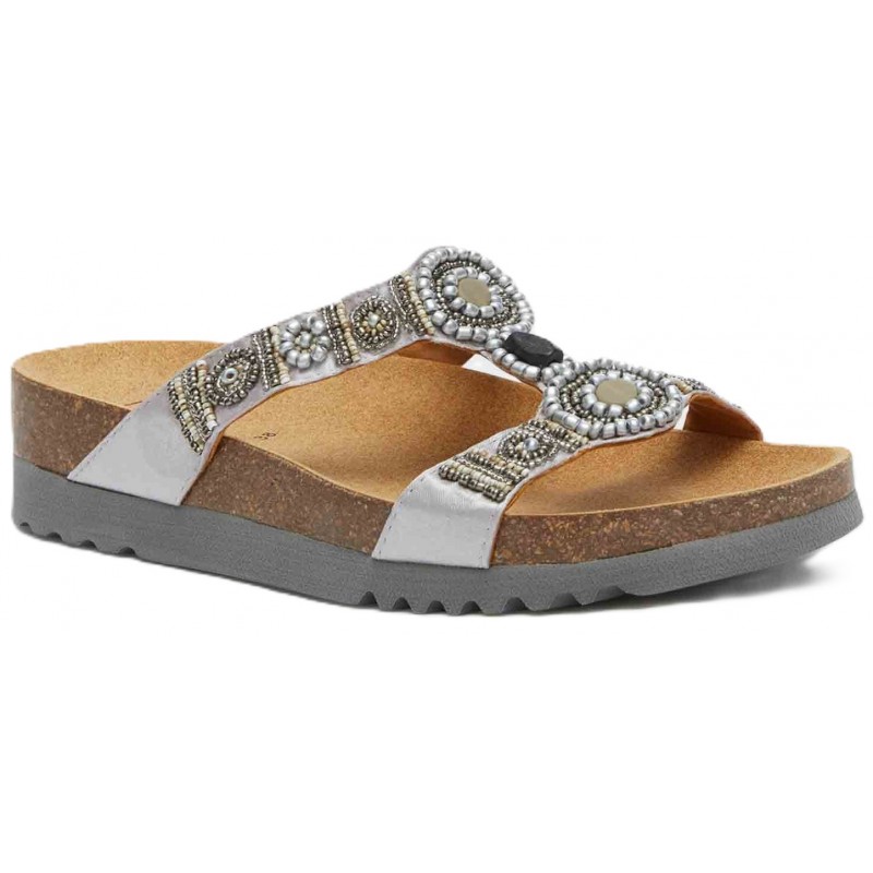 SCHOLL ciabatte sandali NEW BOGOTA' WEDGE plantare BioPrint ARGENTO/PELTRO perline pietre CANNA DI FUCILE