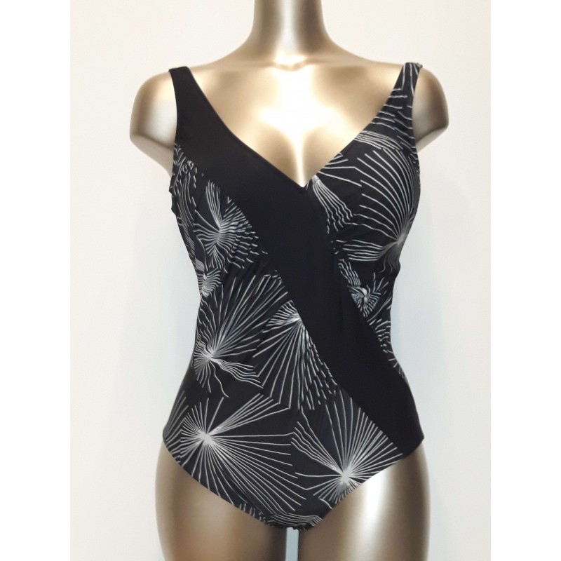 GOLDEN BEACH costume intero taglie forti SABA 384 contenitivo inserto trasversale NERO SOFFIONI senza ferretto coppa C leggermen
