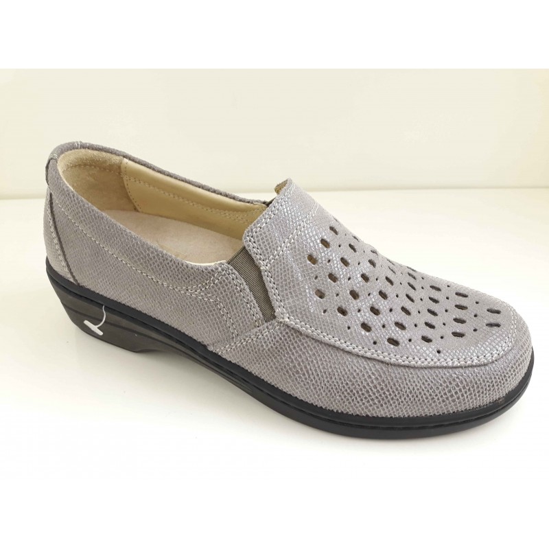 LOREN scarpa donna estiva pelle traforata M2640 calzata ampia VIPERINA/TAUPE/TORTORA plantare estraibile