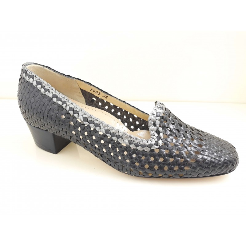 LOREN scarpa donna estiva pelle intrecciata forata a1003 calzata ampia BLU/ ACCIAIO plantare estraibile