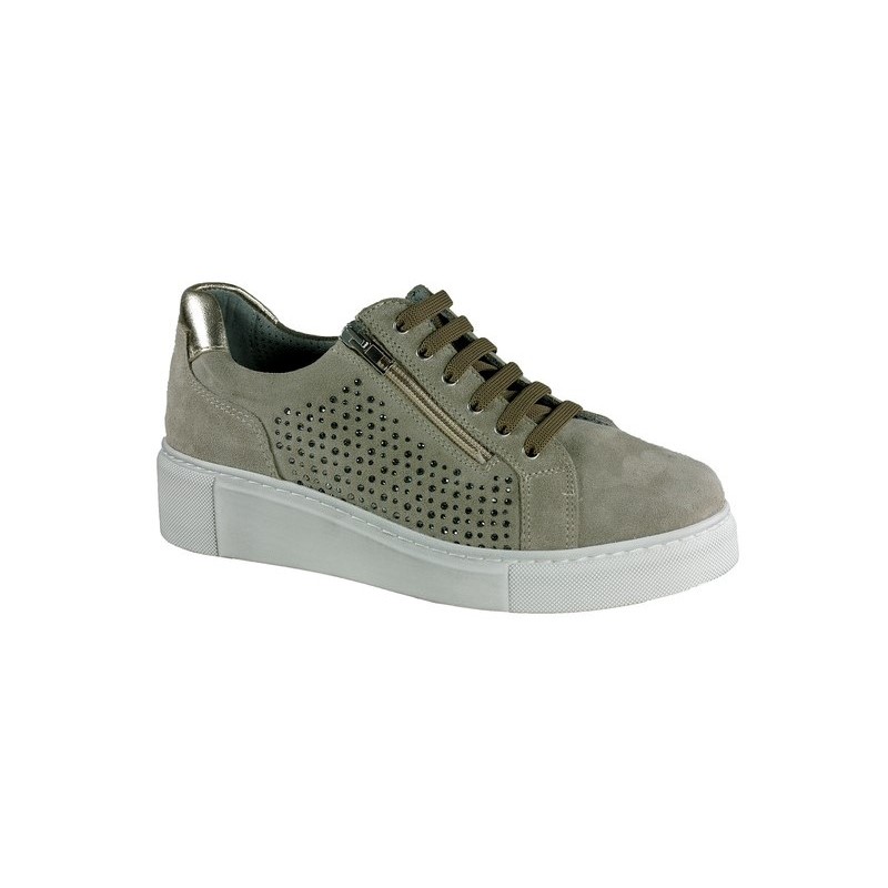 LOREN sneaker con zip laterale e lacci M2976 SCAMOSCIATO/LAMINATO/BEIGE STRASS plantare estraibile