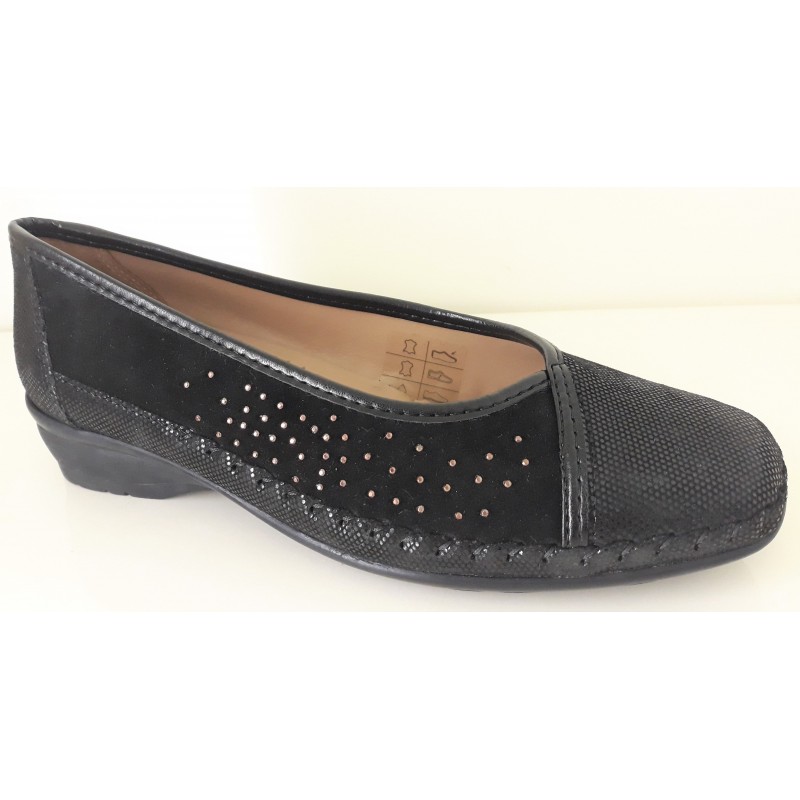 LOREN scarpe decollete ballerina K3967 morbidissima pelle NERO plantare soft ST.PUNTO/SCAMOSC.