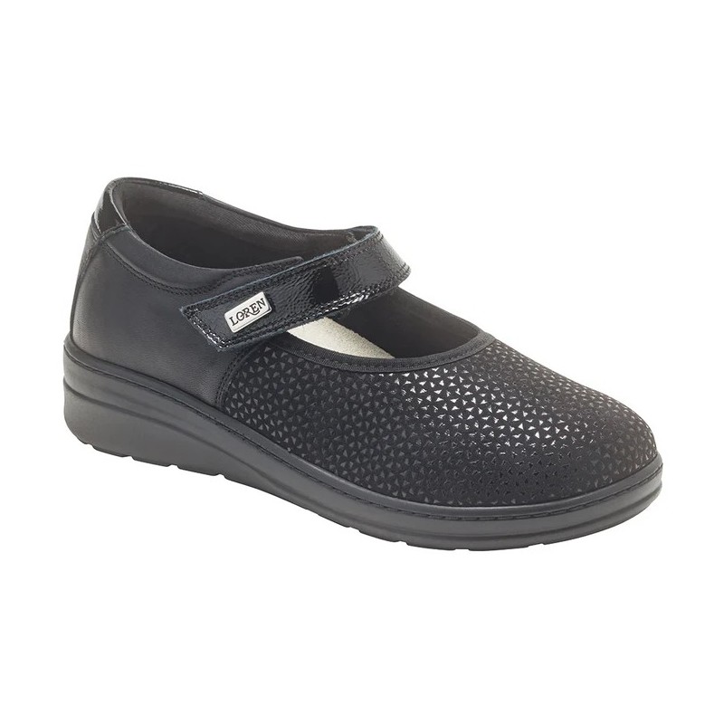 LOREN scarpe ortopediche strappo Mary Jane MARISA M3179 plantare estraibile NERO ELAST