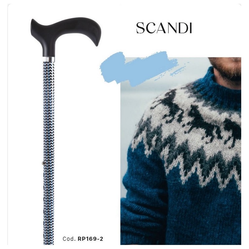 MORETTI BASTONE BRIO RP169-2 altezza regolabile FANTASIA SCANDI ZIG ZAG manico Derby ABS alluminio anodizzato