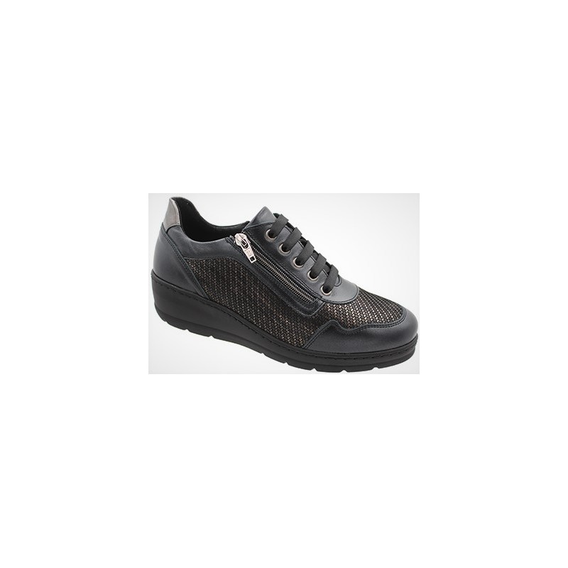 PODOLINE scarpe pelle CANDIANA con zip laterale e lacci NERO plantare estraibile