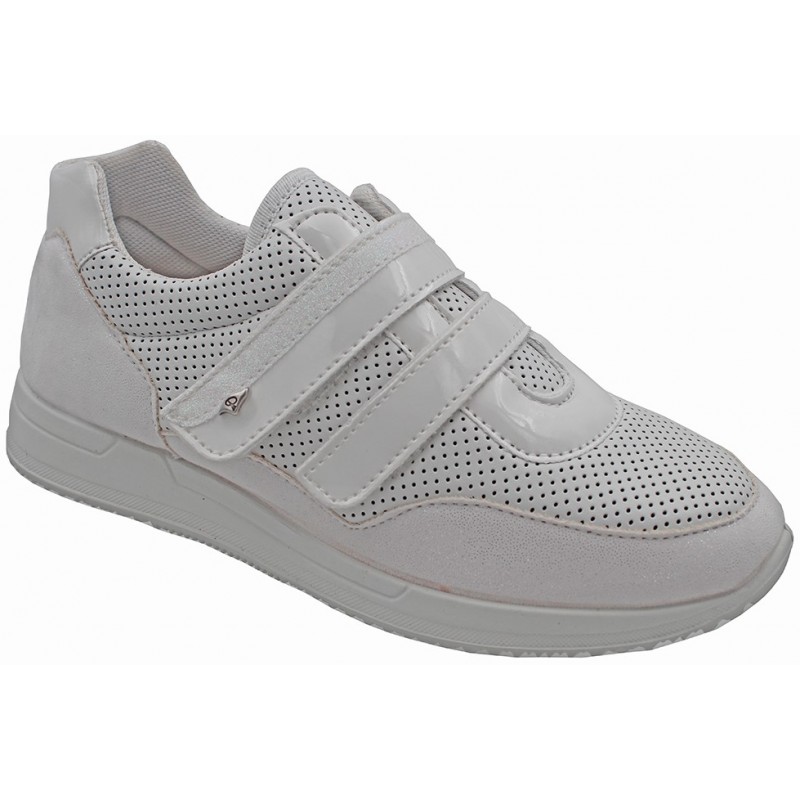 Tomaia elasticizzata in tessuto setaflex traforato BIANCO/ORO, doppia chiusura a strappo, adatta per piede reumatico e alluce valgo, suola antiscivolo ultraleggera, soletta estraibile