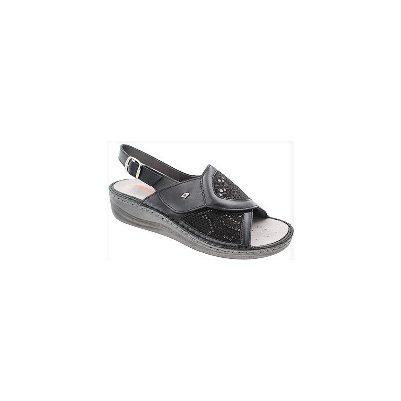 PODOLINE sandali pelle stretch 1 strappo BELLEGRA predisposti plantare estraibile NERO perlato - CON INSERTI MORBIDI ADATTI A CHI HA PROBLEMI DI ALLUCE VALGO O AL MIGNOLO