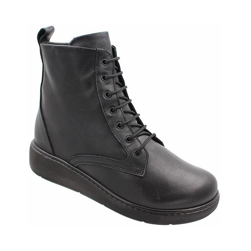 PODOLINE tronchetto stivaletto pelle cerniera e lacci LAVA plantare estraibile NAPPA NERO con zip predisposto