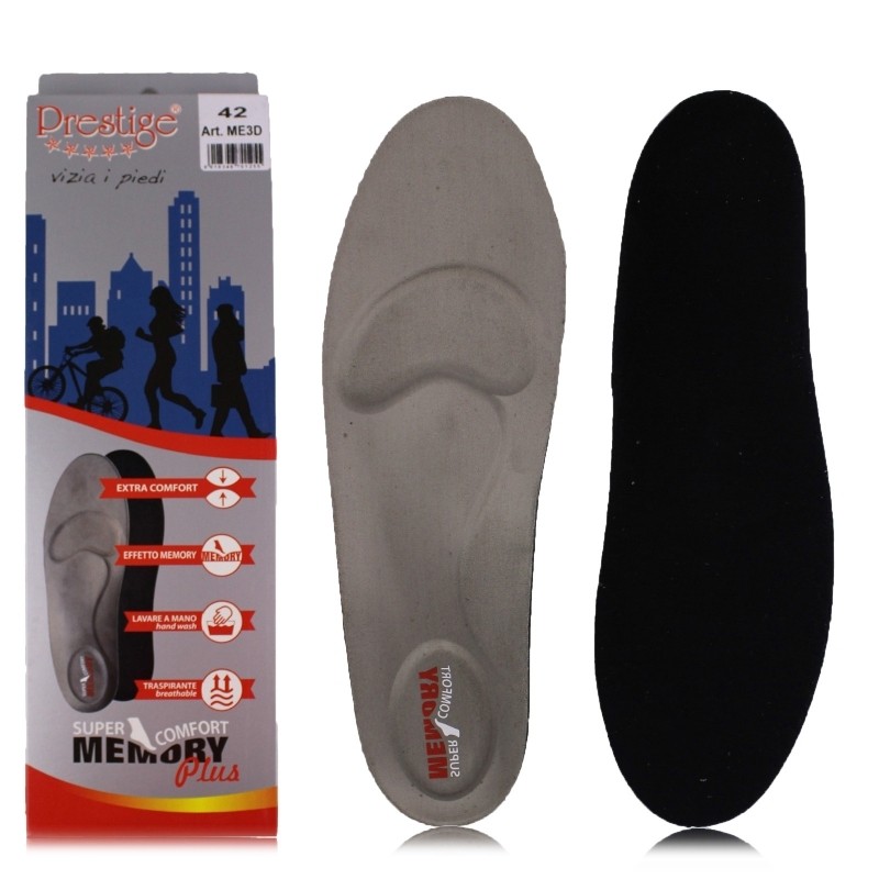 PRESTIGE Plantari anatomici MEMORY SUPER COMFORT PLUS morbidissimi PME3D microfibra GRIGIO paio