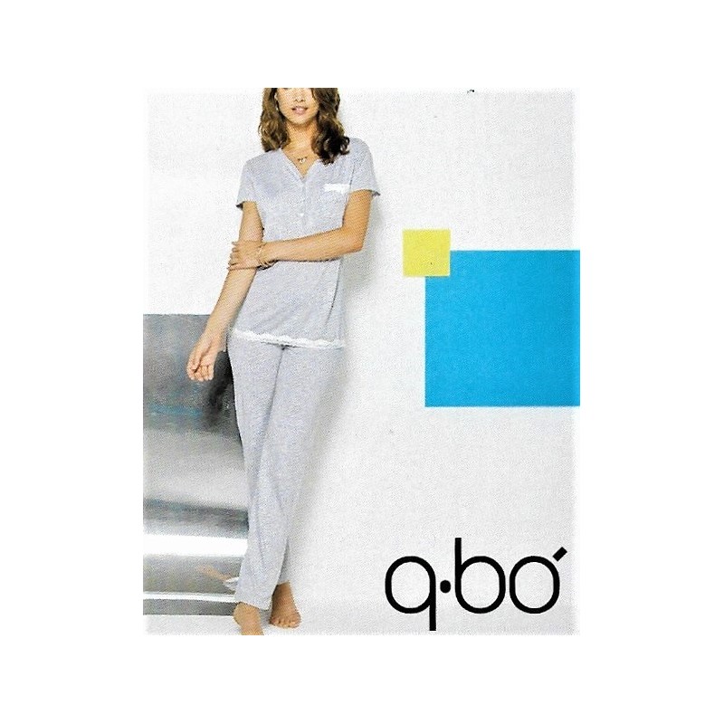 Q BO' pigiama leggero 626 serafino manica corta pantalone lungo cotone modal GRIGIO