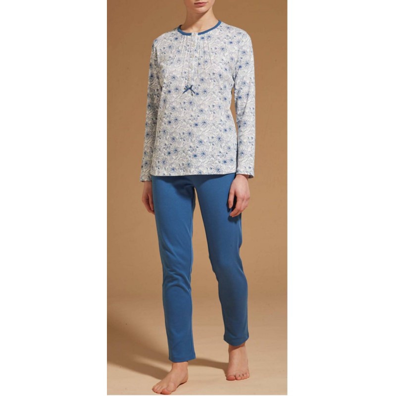 RAGNO Pigiama D540N1 lungo serafino 5 bottoni caldo cotone interlock CELESTE FANTASIA