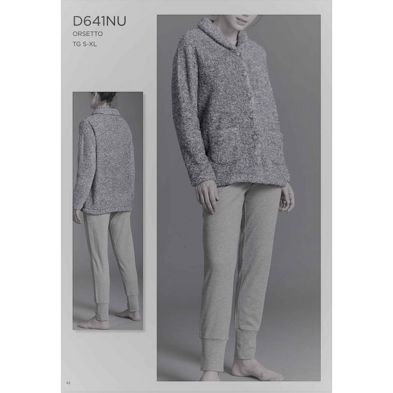 RAGNO Tuta Pigiama D641NU aperto con bottoni tasche collo sciallato GRIGIO ORSETTO MELANGE
