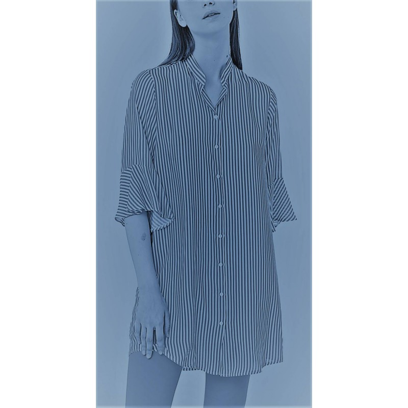 RAGNO Abito Chemisier EcoSeta freschissimo mussola di viscosa DI36DW bottoni caftano RIGHE BLU