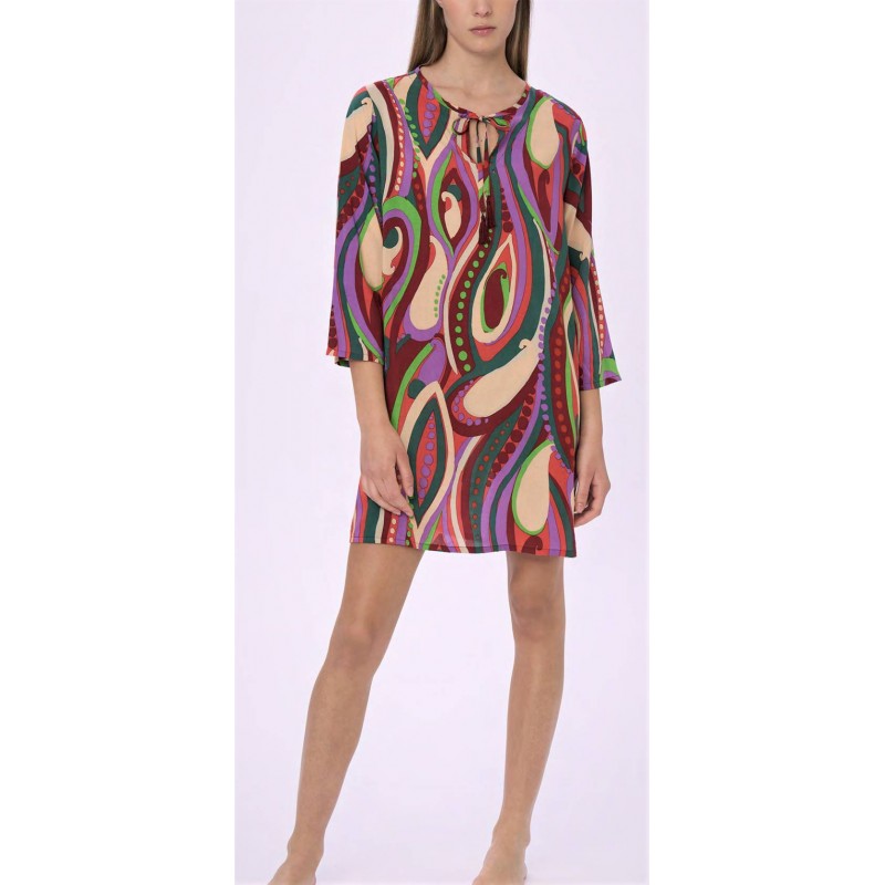 RAGNO Abito Chemisier EcoSeta mussola di viscosa DN11DE caftano scollo v MULTICOLOR rhododendron